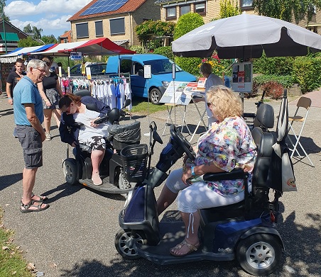 Het SCOOT&GO-project van het Dorpsnetwerk was nadrukkelijk aanwezig op jaarlijkse braderie van het bloemencorso. Zo kon SCOOT&GO aandacht vragen voor de online crowdfunding-actie waarmee geprobeerd wordt voldoende geld in te zamelen voor de afbetaling van de tweede scootmobiel. Doneren kan rechtstreeks via de crowdfundingpagina van “Samen voor de buurt”.
